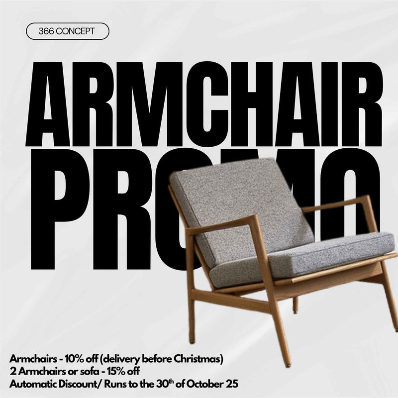 We are so excited to offer 10% off all our armchairs/ lounge chairs from 366 Concept. Buy 2 and you get 15% off.